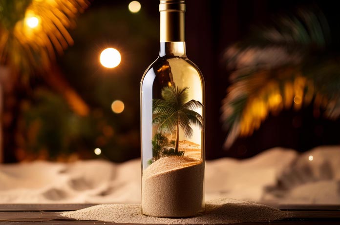 If your message is more of a pirate theme we will use a pirate font. Want a specific font advise in the special instructions and comments form field. Choose from our Destination Line of invitations, which features 8-inch tall USPS approved plastic bottles; our Signature Line, which features 8-inch tall glass bottles;or from our Premiere Line, which features 11-inch tall glass bottles. In the bottle we also add sand and seashells to create a washed up effect.