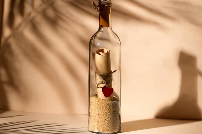 Carry the healing touch of sweet messages everywhere you go with this message in a bottle keychain that creates lovely accents on your tote bag as well. Amp up your Christmas decoration game with these festive-themed messages in bottle ornaments. Adding a floating message to tiny bottles is a nice spin-off from the regular love letter staple accompanying Valentine’s Day.